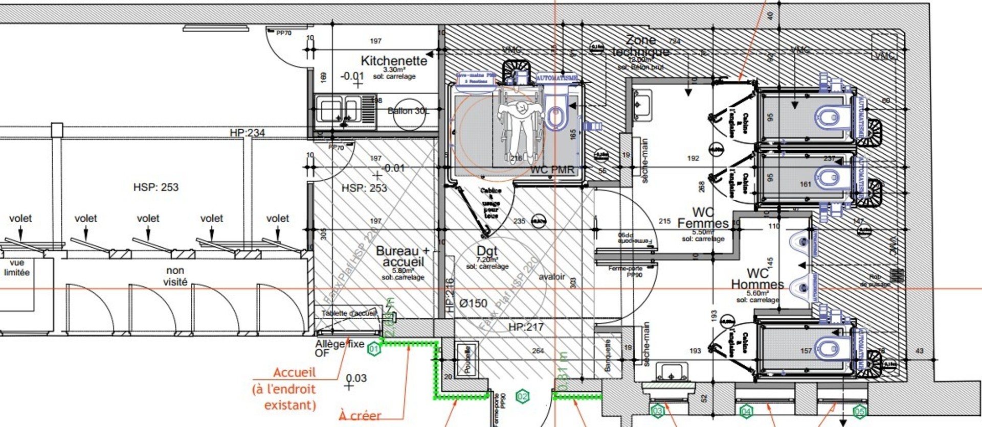 Les sanitaires hommes, actuellement au fond de l’impasse, serons relocalisés à côté des sanitaires femmes, dans le cadre d’un accès unique permettant une accessibilité aisée.