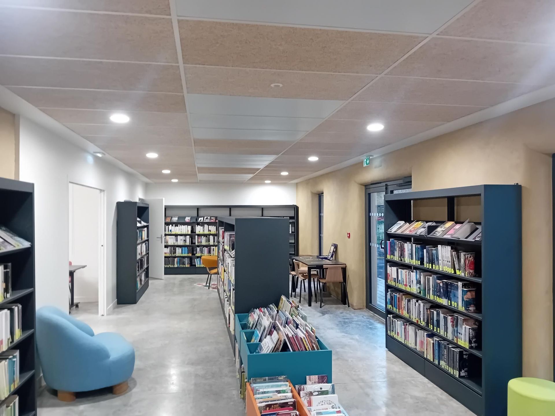 La médiathèque est un bâtiment éco-conçu (récupération des eaux de pluie, panneaux solaires...). Une attention particulière a été donnée à la modularité du bâtiment pour favoriser son évolutivité.
