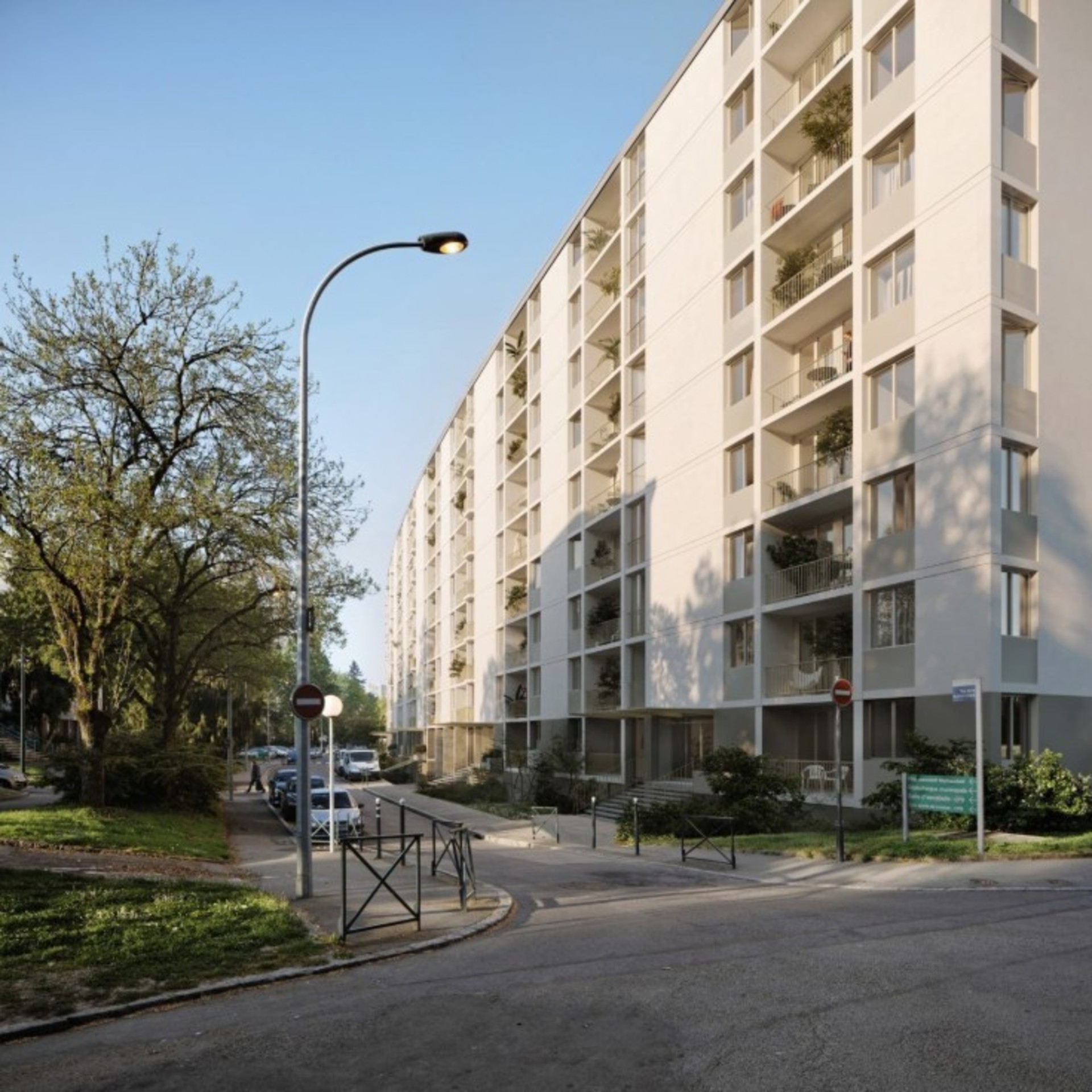 Sa réhabilitation doit répondre à un double enjeu. Le premier est urbain et le second est relatif à l’amélioration du cadre de vie des logements. Elle comprend l’isolation thermique et acoustique de l’ensemble des logements ainsi qu’une réfection de l’ensemble des façades pour proposer une architecture sobre et élégante. Le projet intègre également l’utilisation de matériaux biosourcés dans les modes constructifs, une réduction des besoins énergétiques et une maitrise de l’impact carbone.