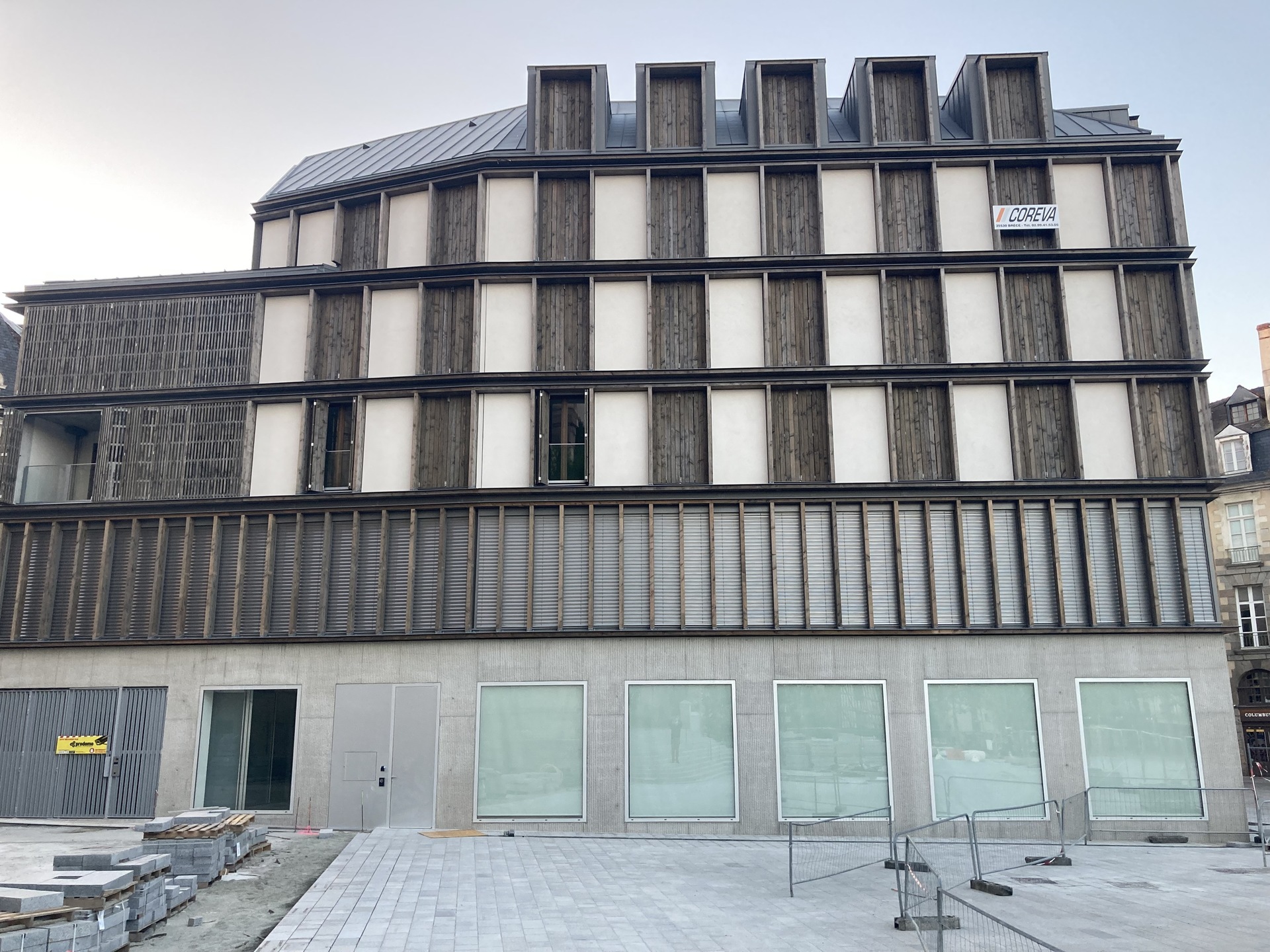- Façades : béton matricé lasuré au RdC / ITE sur MOB avec habillages bois façon pans de bois dans les étages