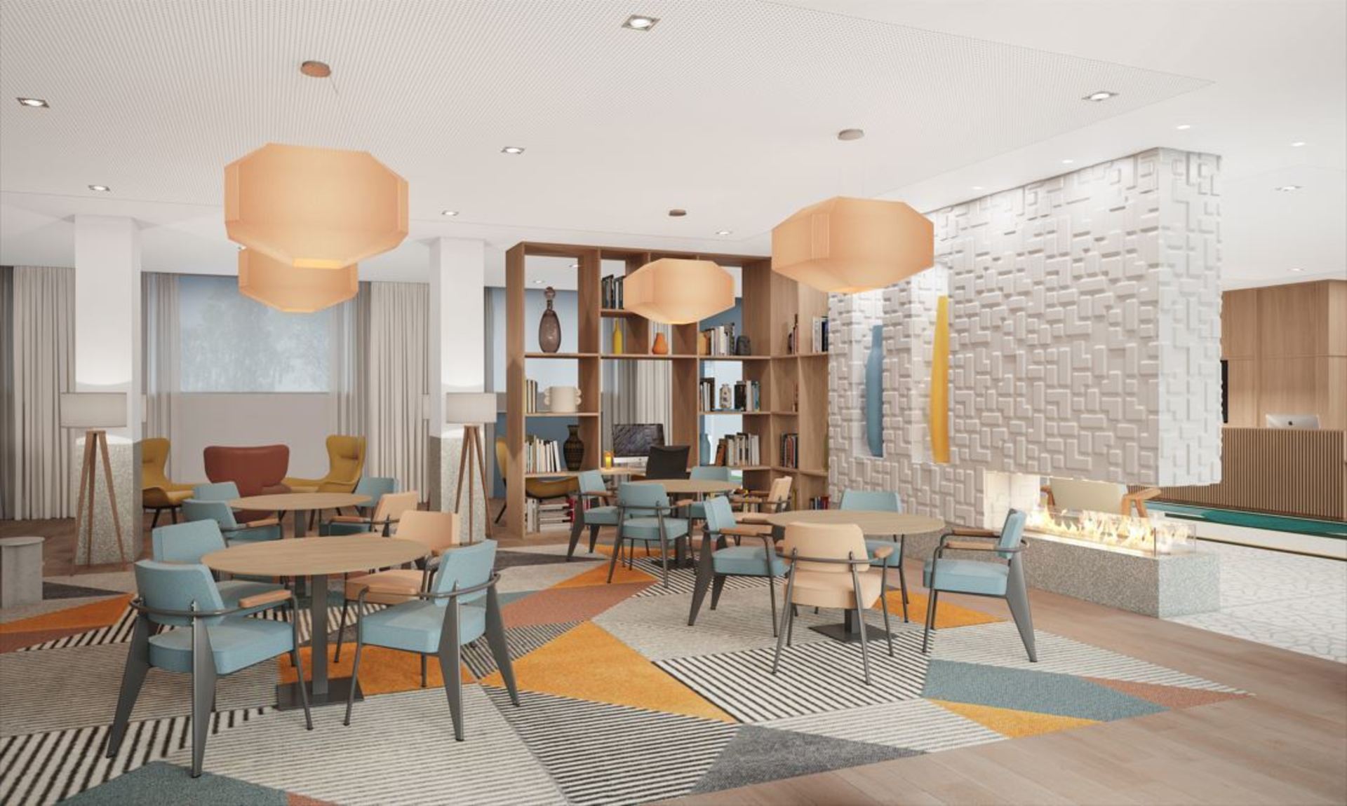 Le bâtiment existant accueillera 63 logements (T1/T2) ainsi que tous les espaces communs en RdC et sous-sol semi enterré (caves / cuisine collective / restaurant / espace de vie / bibliothèque / fitness / coiffeur etc…).